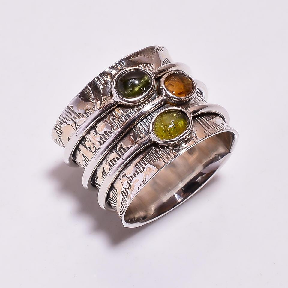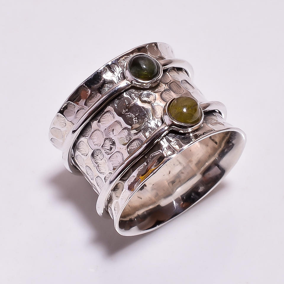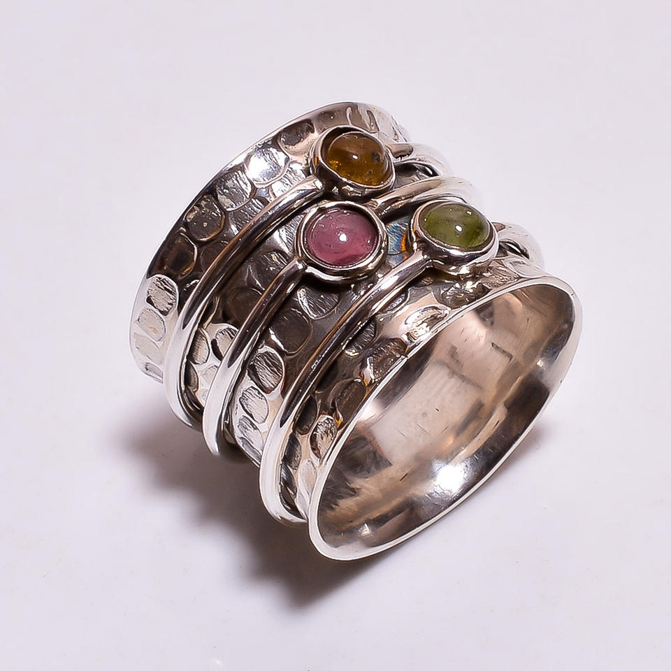 แหวนสมาธิทัวร์มาลีนสีเงินสเตอร์ลิงทำด้วยมือส่งออกเครื่องประดับขายส่งจำนวนมากทัวร์มาลีนธรรมชาติปรับได้