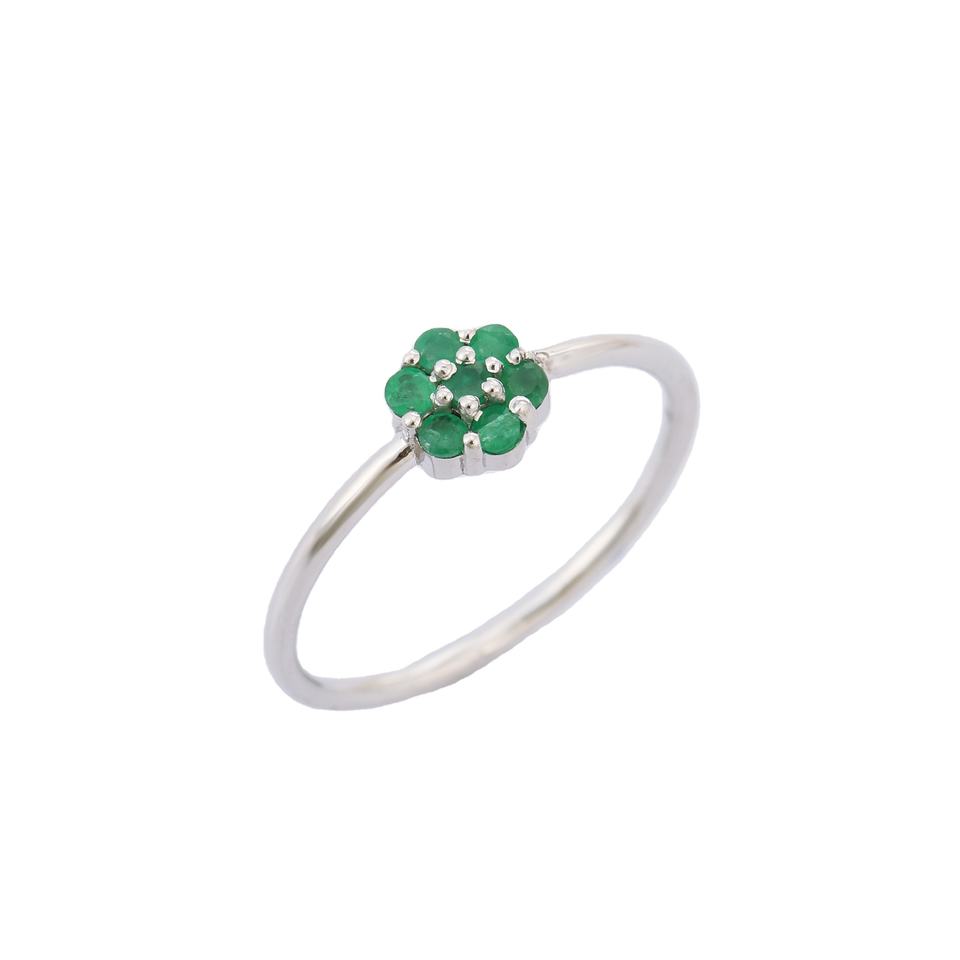 แฮนด์เมดเครื่องประดับที่ดีธรรมชาติมรกตที่เรียบง่ายดอกไม้ที่เรียบง่ายแหวน14พันสีขาวที่เป็นของแข็งแหวนหินสีขาวแหวนแฟชั่นเครื่องประดับ