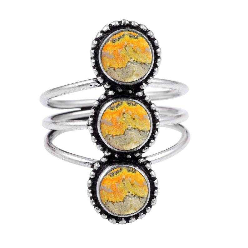 Handmade เครื่องประดับแหวนสําหรับหญิงและสุภาพสตรีธรรมชาติ Bumble Bee Jasper บนเงินแท้ 925 ประทับตราแหวนสัญญา