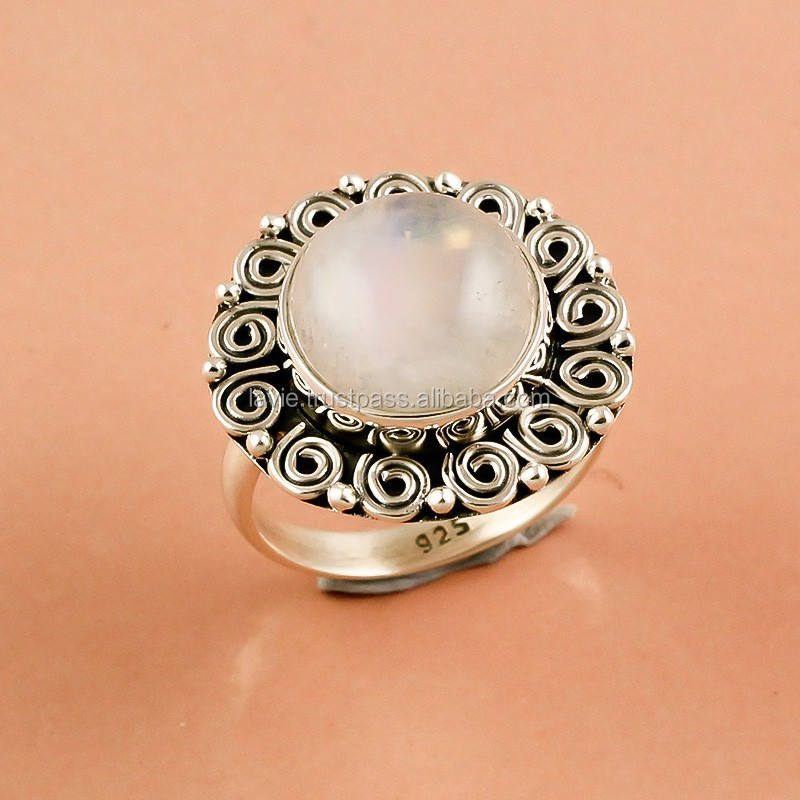Handmade Fine Jewelry Wholesale 925 Sterling Silver Rainbow Moonstone Gemstone Rings Wedding Engagement Gift Anniversary Classic