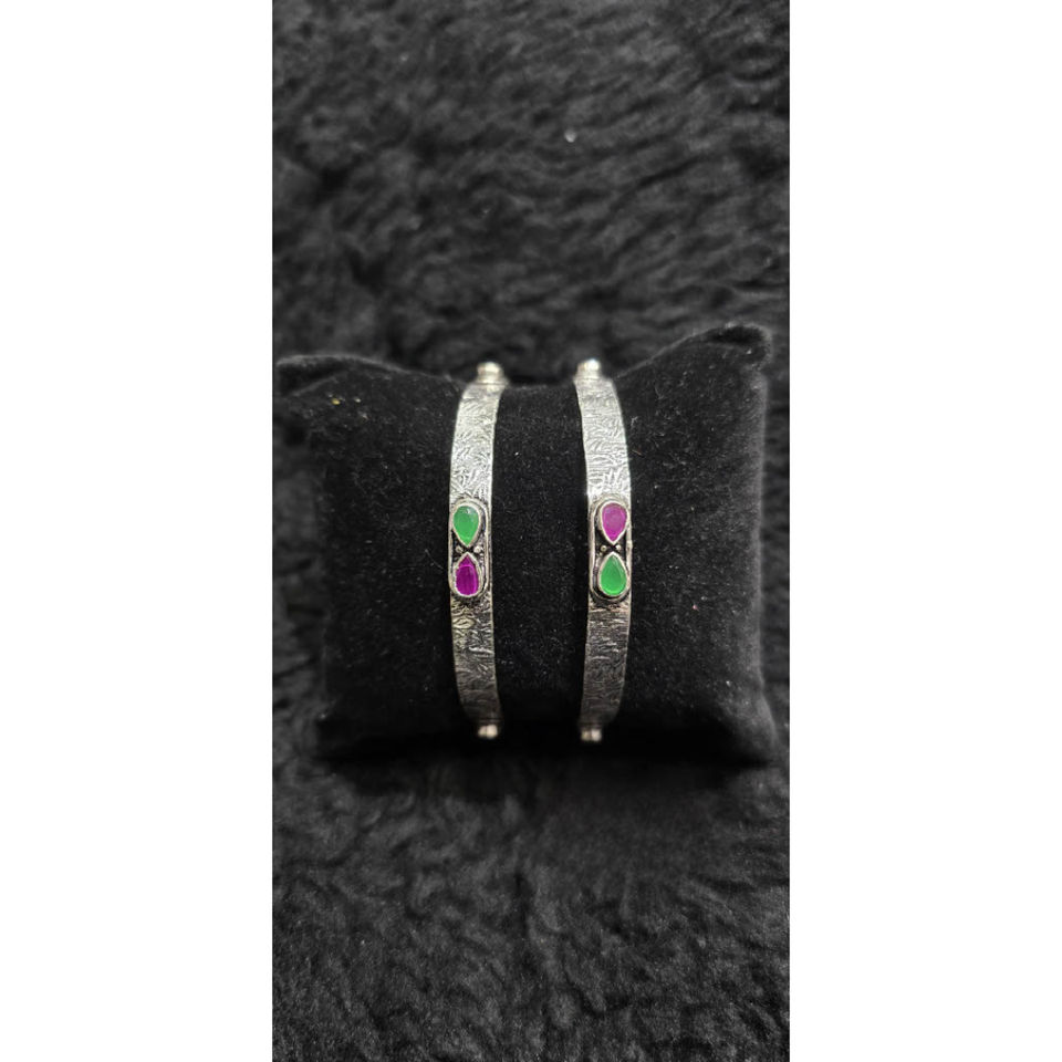 กำไลเงินคุณภาพดีทำด้วยมือประดับเพชรสีแดงและสีเขียว