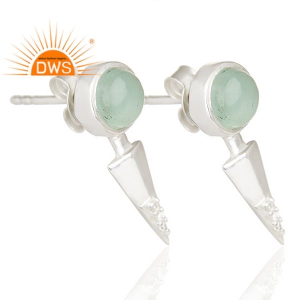 ต่างหูเงินแท้ทำมือประดับด้วยพลอยธรรมชาติ CZ และอะควาชัลซีโดนี ผู้ผลิตเครื่องประดับตามสั่ง
