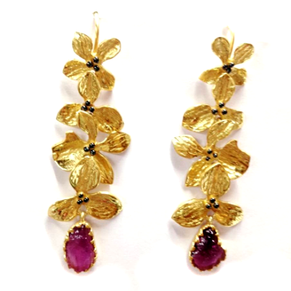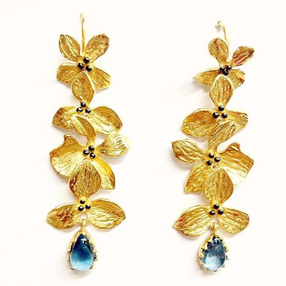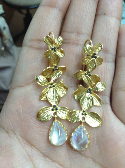แฮนด์เมดดอกไม้925เงินสเตอร์ลิงชุบทองพลอยธรรมชาติพรรคสวมใส่ครบรอบของขวัญแต่งงานวันเกิด