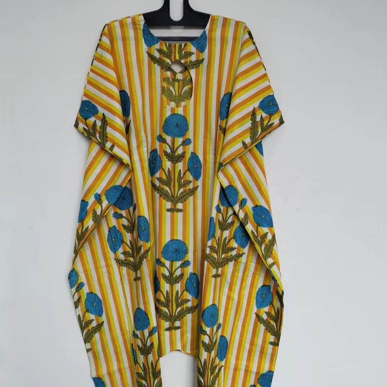 ชุดเดรสผ้าฝ้ายสไตล์โบฮีเมียนลายดอกไม้ทำมือ ชุดชายหาดน้ำหนักเบาสไตล์อินเดีย