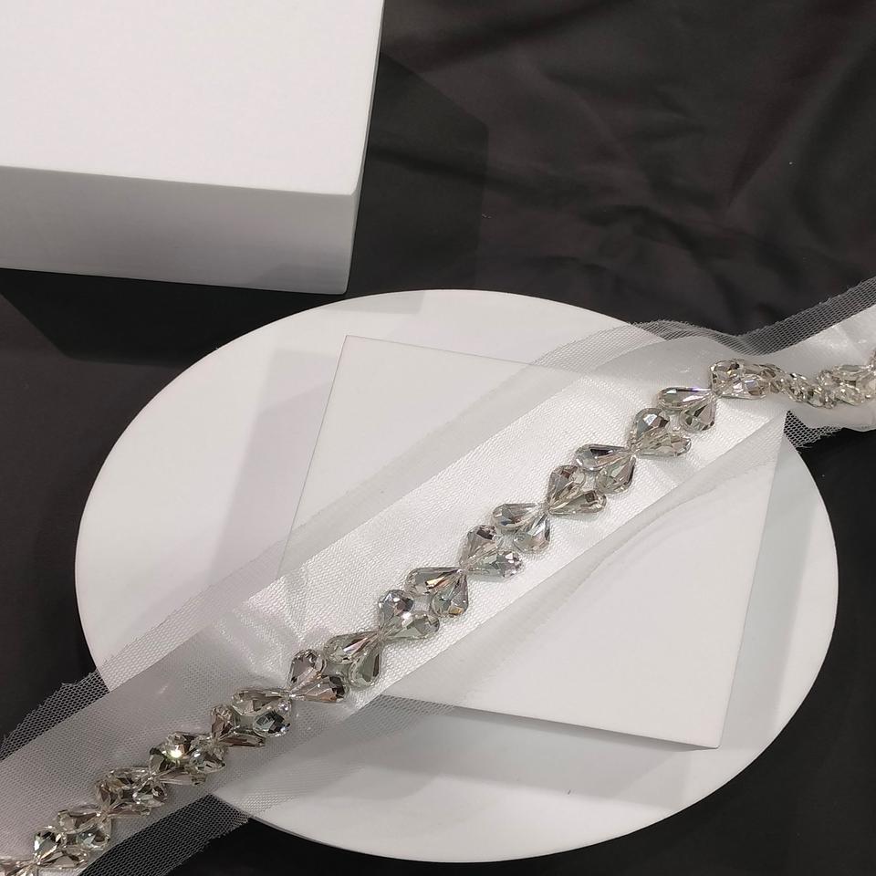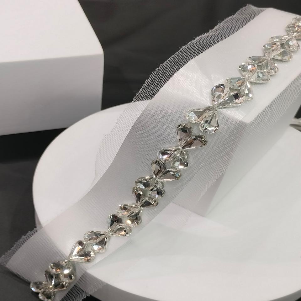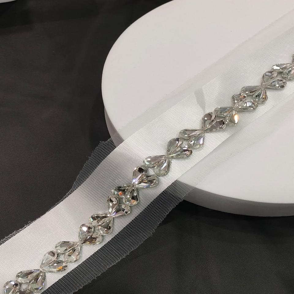ผ้าลูกไม้ขอบลายดอกไม้ประดับด้วยหินคริสตัลสีเงินติดเพชรทำด้วยมือ