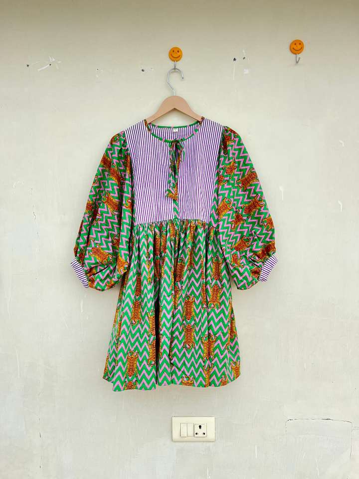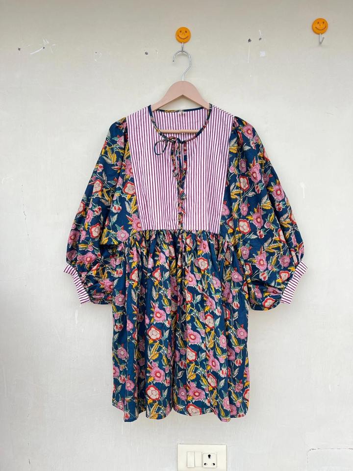 มินิเดรสผ้าฝ้ายลายดอกไม้ทำด้วยมือสำหรับผู้หญิงคอวีลึกปิดสายเสื้อโบฮีเมียนฤดูร้อนเป็นมิตรต่อสิ่งแวดล้อมธรรมชาติ