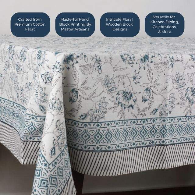 ผ้าปูโต๊ะพิมพ์ลายดอกไม้สไตล์อินเดียทำด้วยมือ6ที่นั่งและ8ที่นั่งสำหรับงานแต่งงานและบ้าน