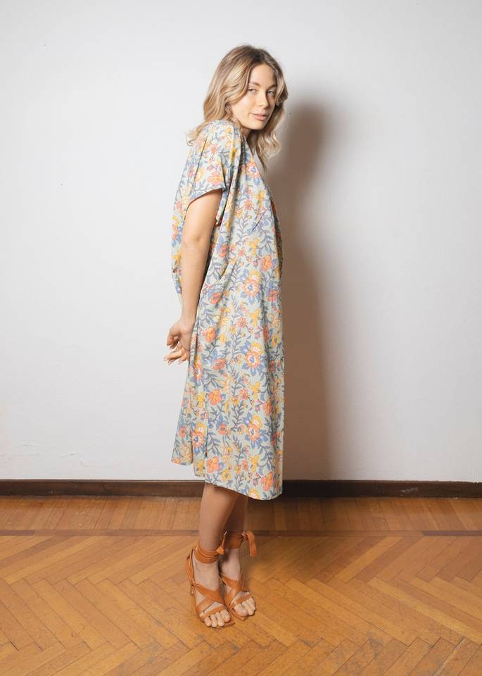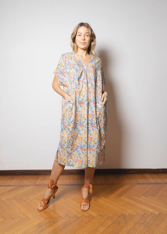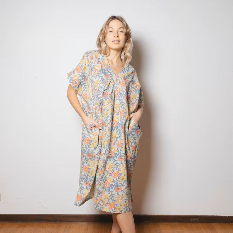 ชุดเดรสผ้าฝ้ายอินเดียพิมพ์ลายดอกไม้ทำมือสำหรับผู้หญิง ชุดฤดูร้อนสไตล์โบโฮ IZNA014