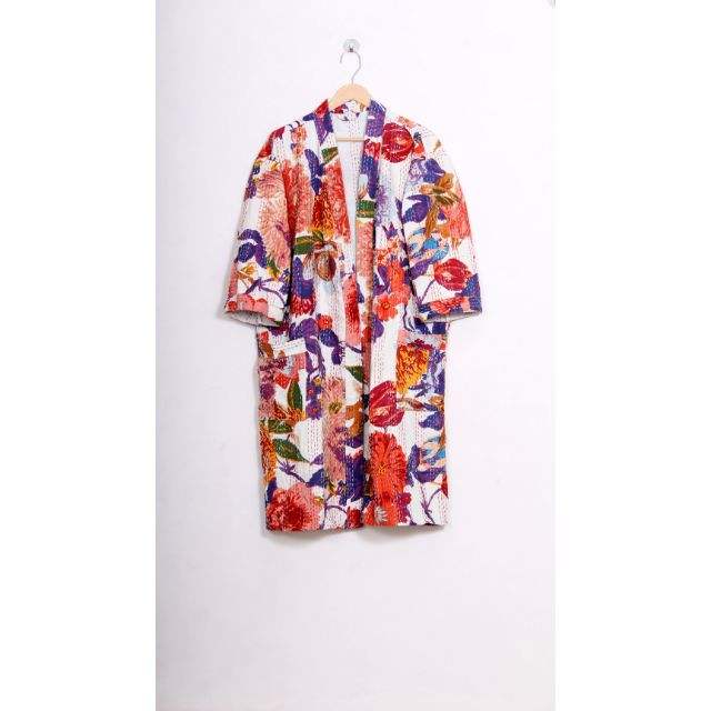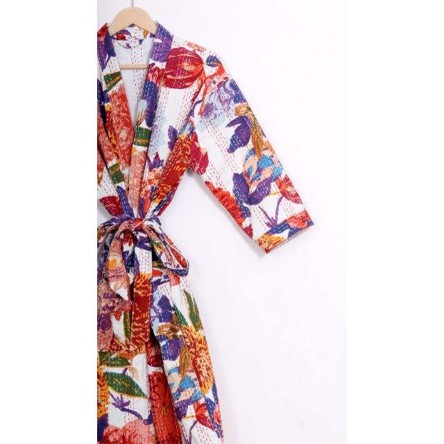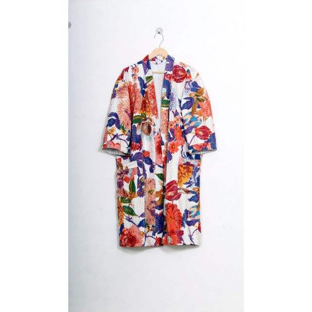 เสื้อแจ็คเก็ตบุผ้าแคนธาสำหรับผู้หญิงพิมพ์ลายดอกไม้ทำมือขนาดฟรีไซส์เสื้อคลุมอาบน้ำใส่สบายชุดนอนใส่ในบ้านสำหรับฤดูร้อนฤดูหนาว
