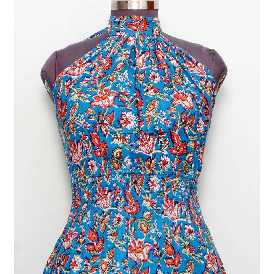 เดรสยาวผ้าฝ้ายพิมพ์ลายดอกไม้ทำมือ คอวี แขนกุด ระบายอากาศได้ดี เป็นมิตรต่อสิ่งแวดล้อม สำหรับผู้หญิง เหมาะสำหรับฤดูร้อน