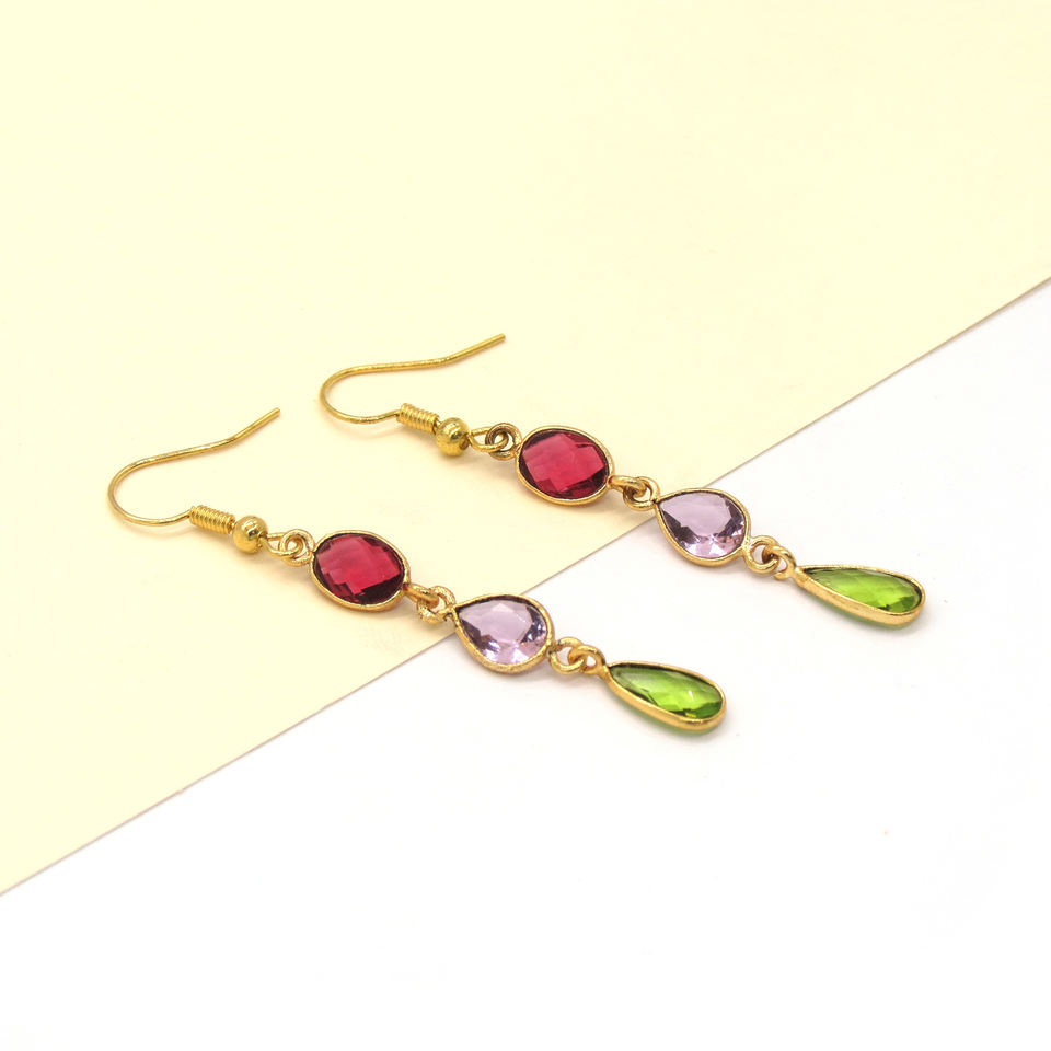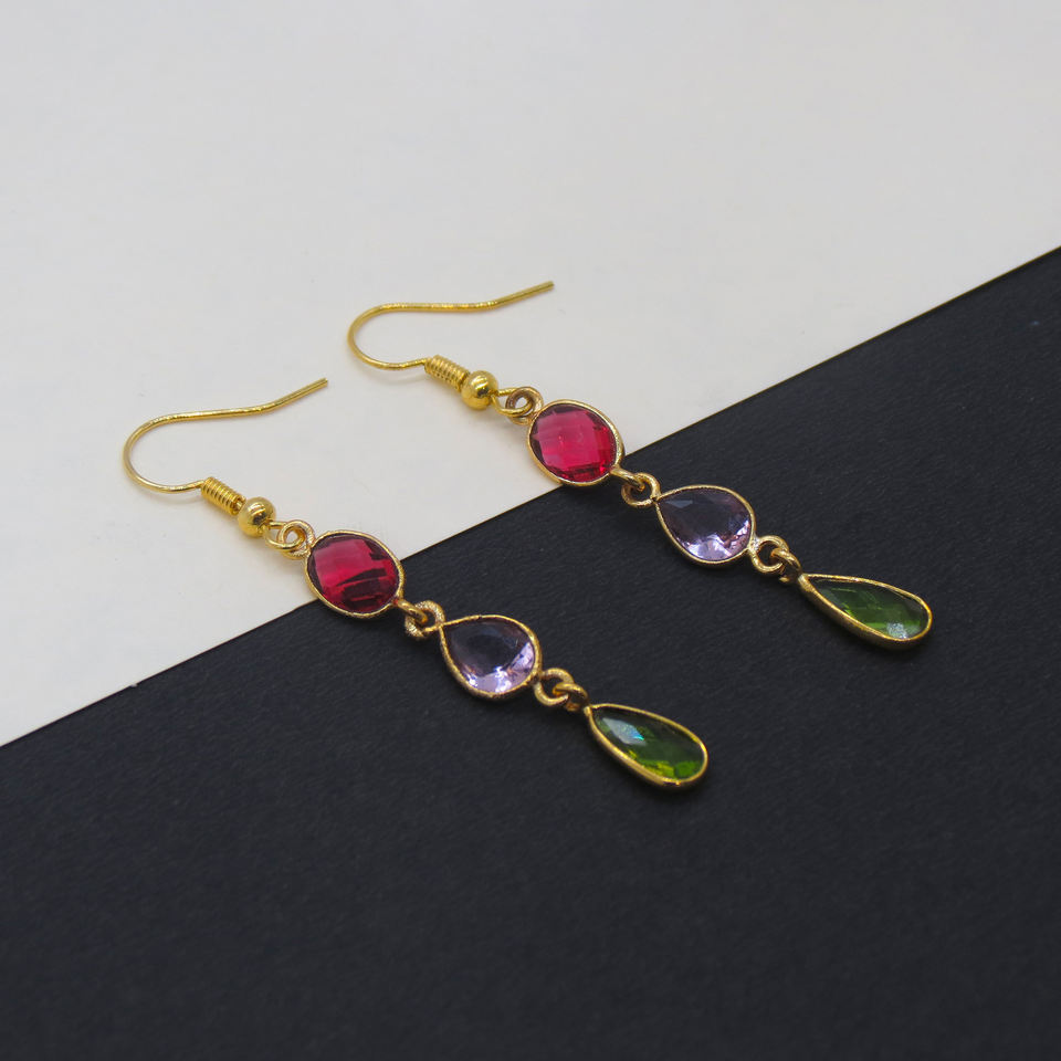 ภาพ:ต่างหูแบบตะขอประดับอัญมณีหลากสี