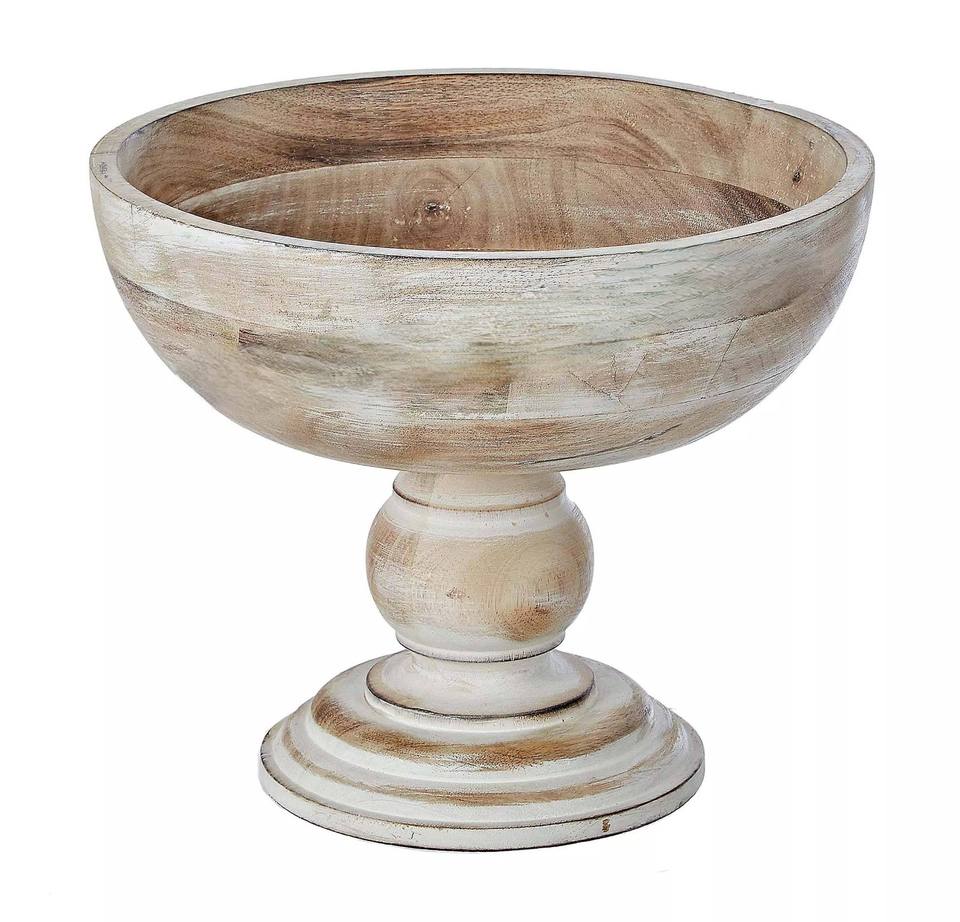 ชามเสิร์ฟแบบมีขา ทำด้วยมือ แกะสลักลายไม้ ชามผลไม้สไตล์วินเทจ เป็นมิตรกับสิ่งแวดล้อม งานฝีมือไม้สีน้ำตาล