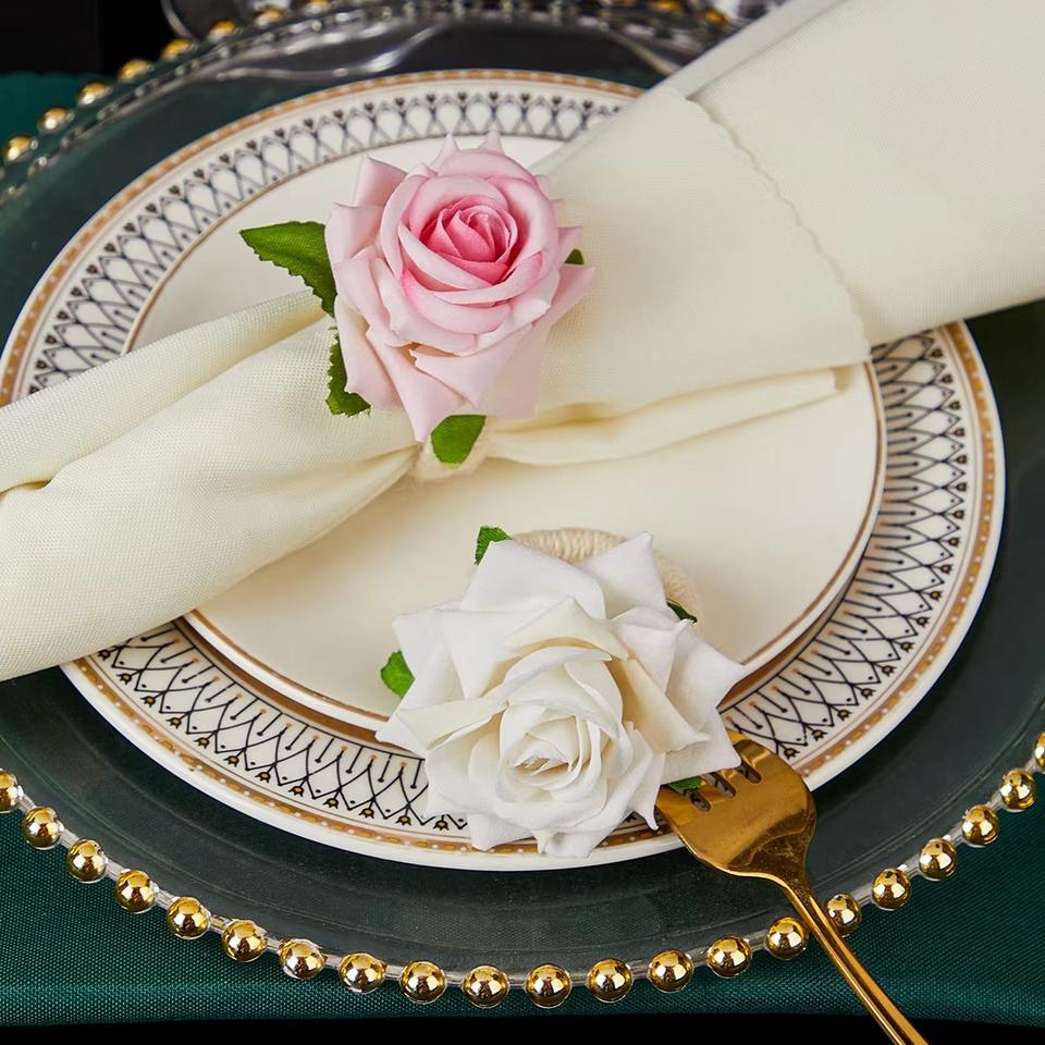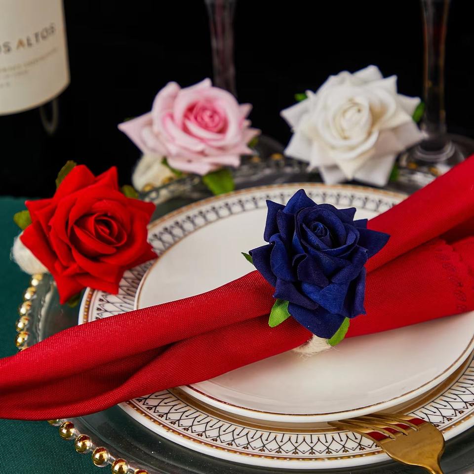 Handmade Forest Rose Simulated Flower Napkin Rings Creative Desktop Decoration Hotels Banquets American Style Wedding