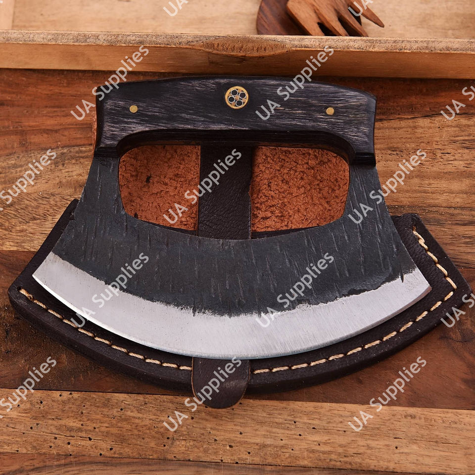 มีดเชฟอลาสก้าอูลู ทำมือจากเหล็กดามัสกัส ตีขึ้นรูปด้วยมือ ด้ามจับไม้ตามหลักสรีรศาสตร์ คมกริบระดับมืออาชีพ ด้ามจับแบบเต็มด้าม ผลิตตามแบบ OEM