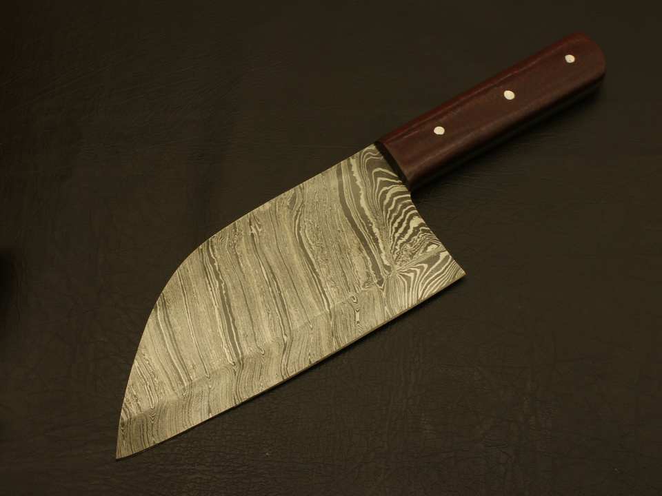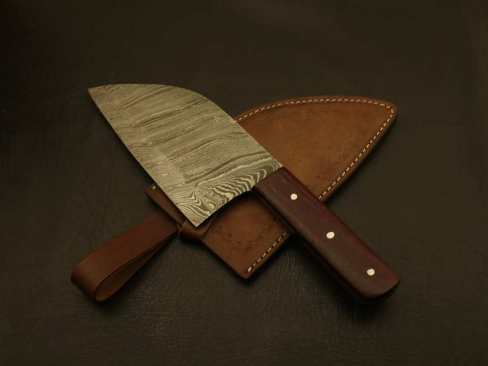มีดเชฟทำครัวใบมีดตายตัว ด้ามไม้ ผลิตด้วยมือจากเหล็กดามัสกัสฟอร์จ แบบฟูลแทง พร้อมปลอกมีด