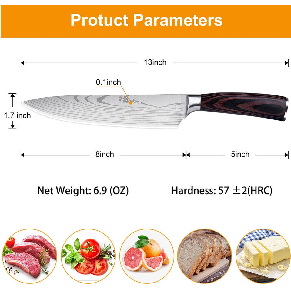 มีดเชฟปาคิสถานดามัสกัสมีดเชฟเหล็ก VG-10ระดับมืออาชีพมีดคมมีดทำครัวด้ามไม้