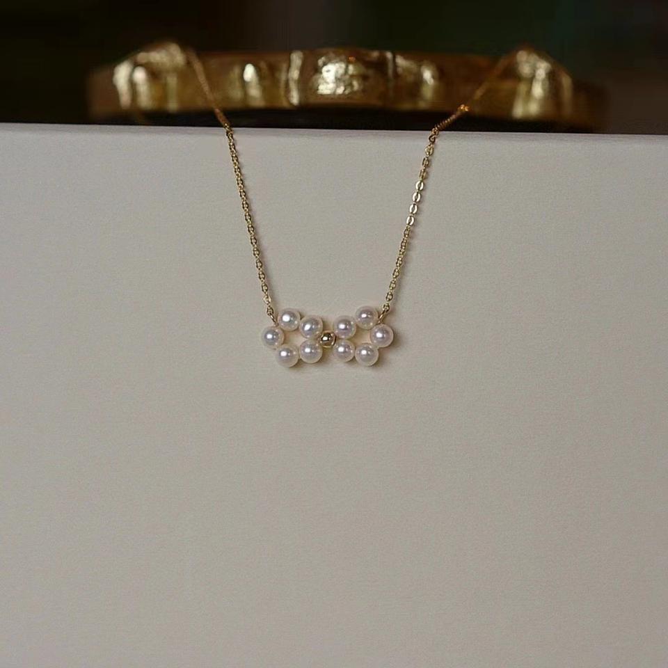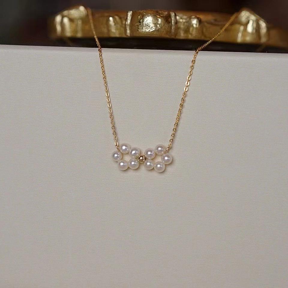 สร้อยคอมุกน้ำจืดทำมือ ดีไซน์เรียบหรู ชุบทองคำขาว 925 สไตล์ดอกไม้เล็กๆ แฟชั่นหรูหราเบาๆ