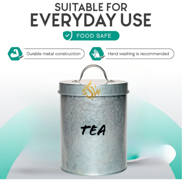 กระป๋องเก็บอาหารโลหะชุบสังกะสีทำมือ พิมพ์ลายตามสั่ง ทนทาน ใช้จัดระเบียบบ้าน/ร้านค้า ภาชนะใส่อาหารสไตล์เรียบง่าย