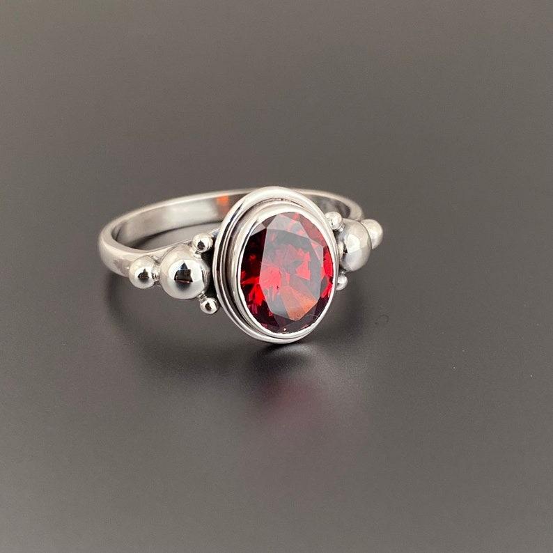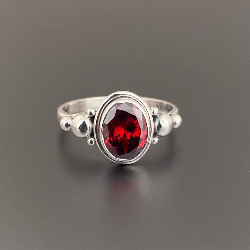 Handmadeโกเมนอัญมณีแฟชั่นเครื่องประดับ 925 ประทับตราเงินสาวแหวน 925 แหวนเงินสเตอร์ลิงแฟชั่นแหวนโกเมน