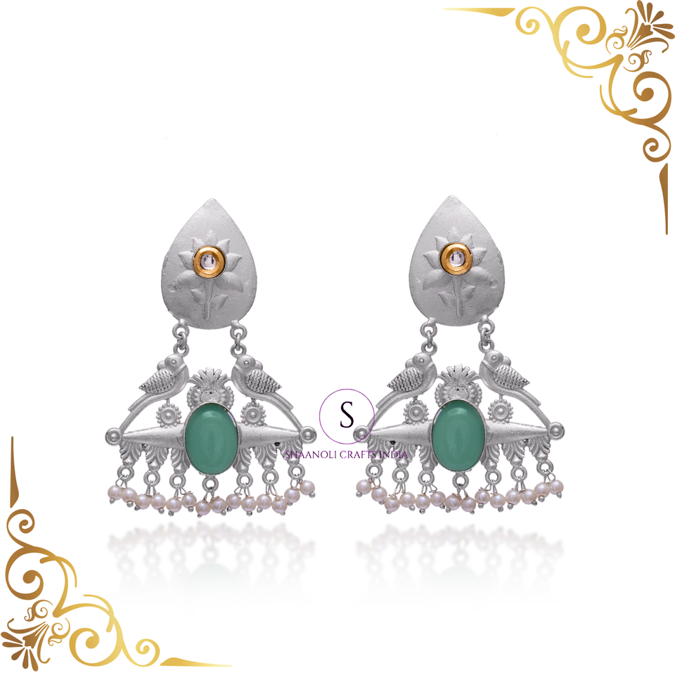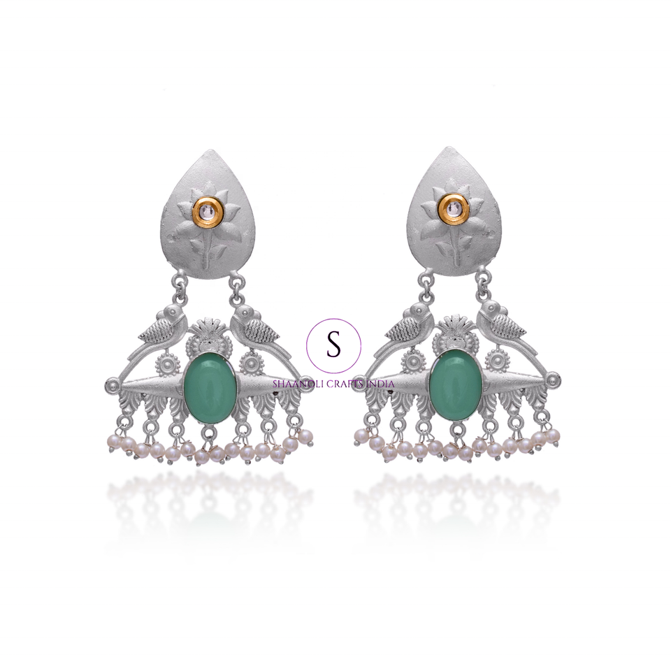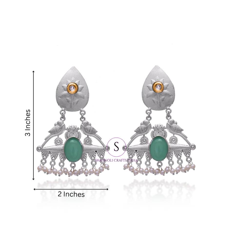 ต่างหูพลอยทำด้วยมือสไตล์โบฮีเมียนสีเงินออกซิไดซ์ลายดอกไม้สำหรับงานแต่งงานต่างหูห้อย