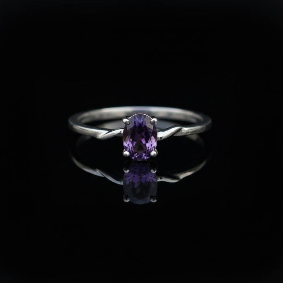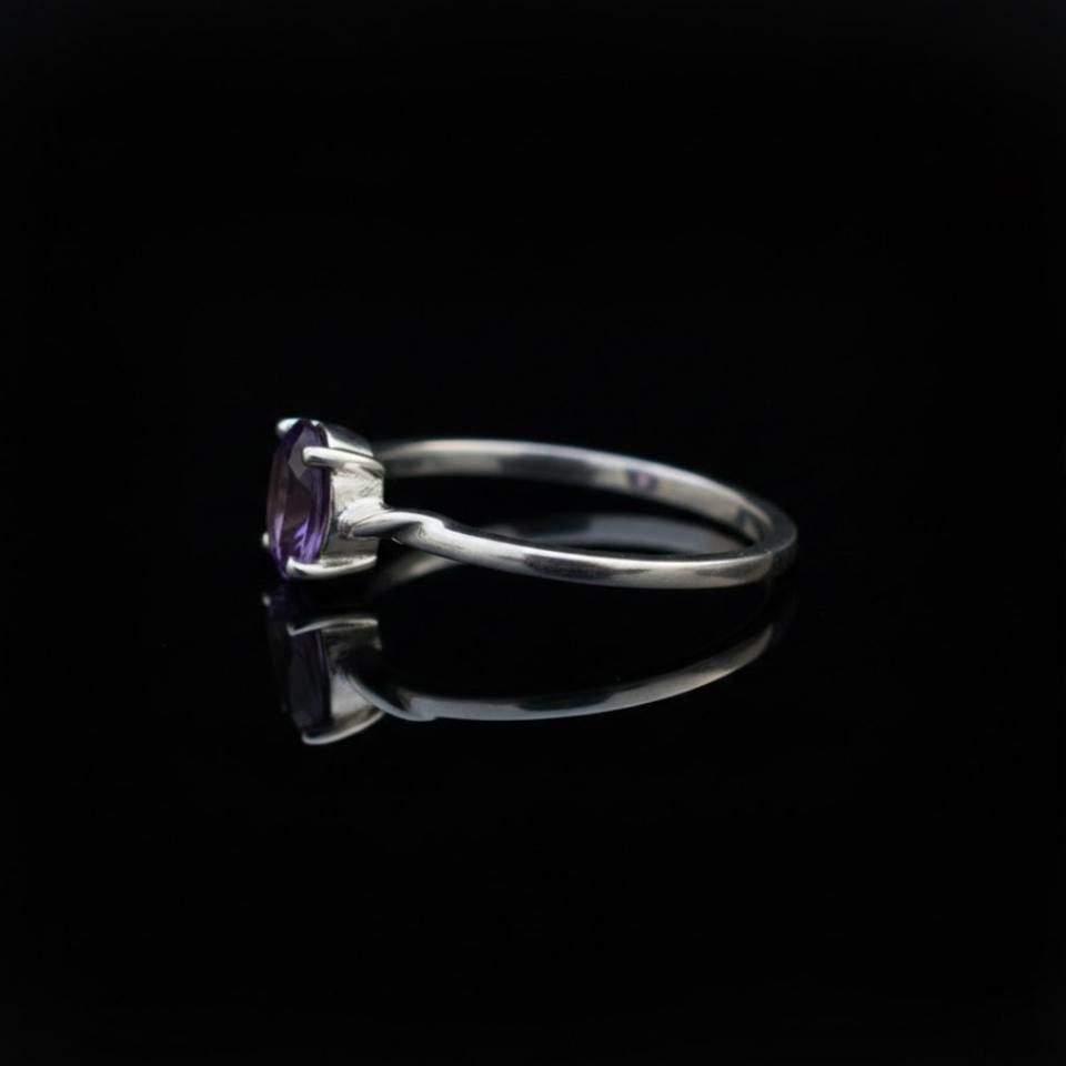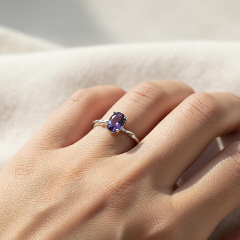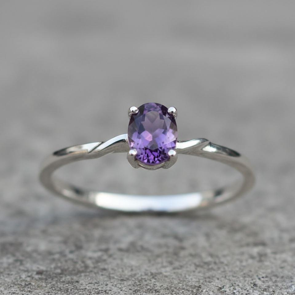 แหวนพลอยทำมือทรงรีแบบมินิมอล ตัวเรือนเงินแท้ 925 ประดับพลอยอเมทิสต์ธรรมชาติ รับรองโดยบุคคลที่สาม เหมาะสำหรับงานแต่งงาน สำหรับชาวคริสต์