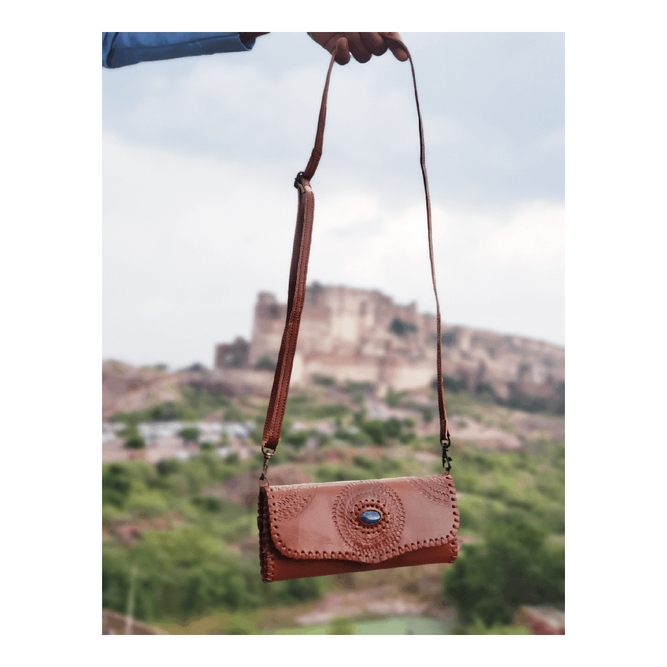 Leather Shoulderbag / Sling Bag / Purse With Gemstone Engraved on it.Product Name