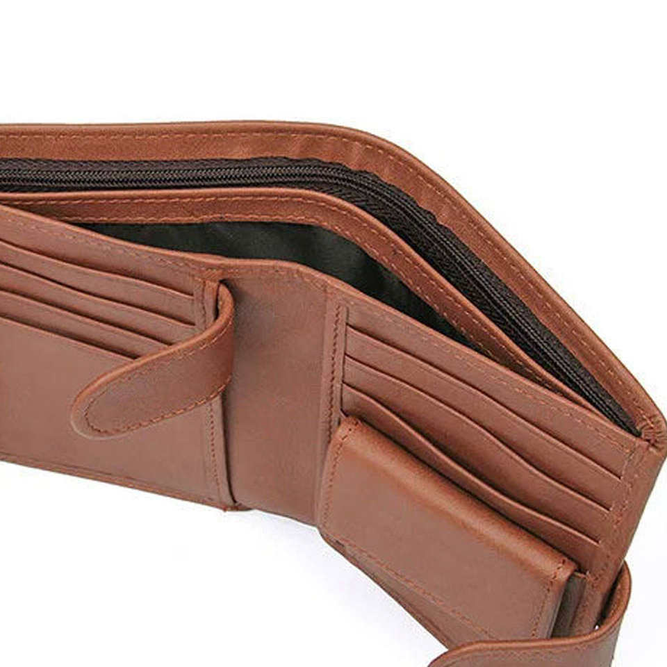 กระเป๋าสตางค์หนังแท้ทำมือสำหรับผู้ชายแบบสั้น พร้อมลายปักและดีไซน์ตัวอักษร กันน้ำ