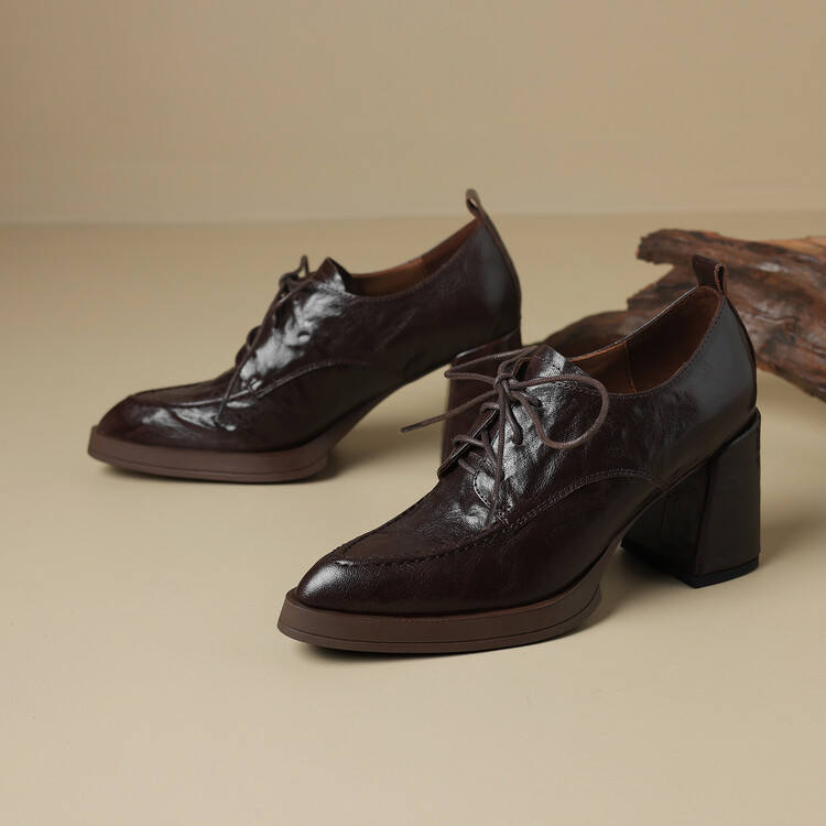 รองเท้าหนังแท้ทำมือ กันน้ำ สำหรับผู้หญิง หัวแหลม ส้นหนา แบบผูกเชือกด้านหน้า กันลื่น ทนทาน ใส่ได้ทุกฤดู แฟชั่น