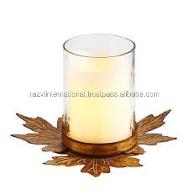 เชิงเทียนแก้วทำด้วยมือพร้อมฐานเหล็กดีไซน์รูปใบไม้สำหรับตกแต่งบ้านในโอกาสอีสเตอร์