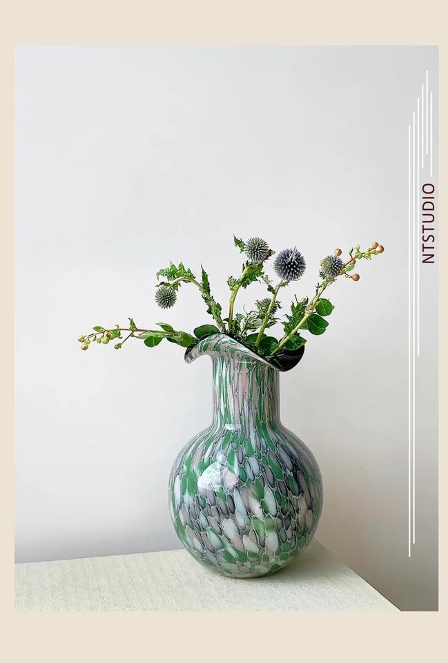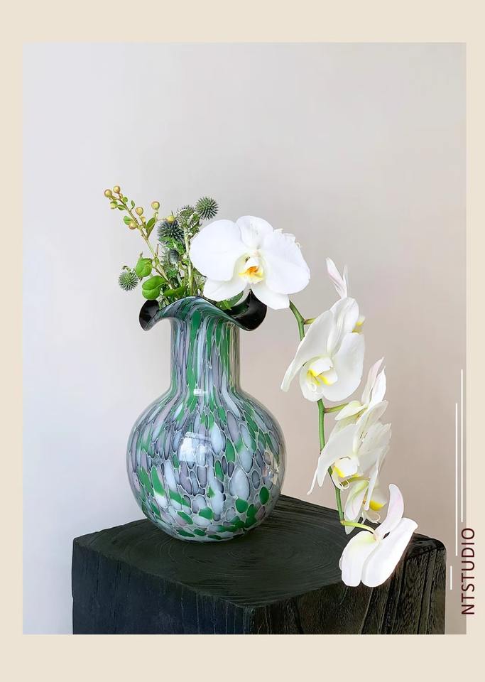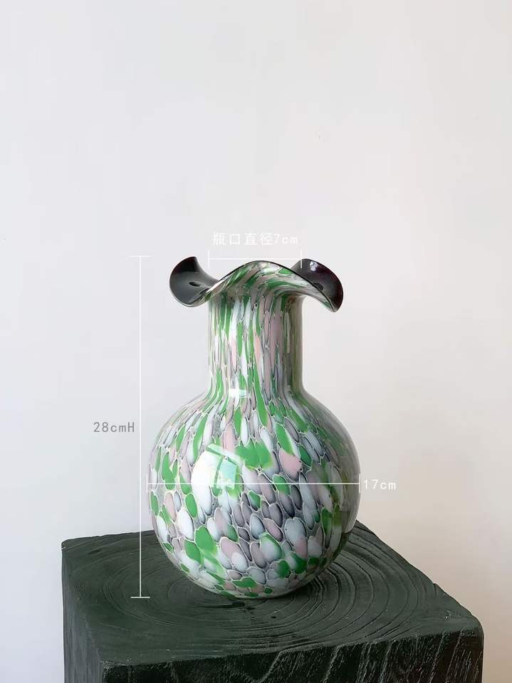 แจกันแก้วทำด้วยมือกับจุดที่มีสีสัน