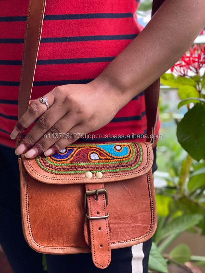 กระเป๋าหนังแพะเย็บปักด้วยมือสำหรับผู้หญิง,กระเป๋าสะพายพาดลำตัวขนาด5*7นิ้วกระเป๋าเงินหนัง