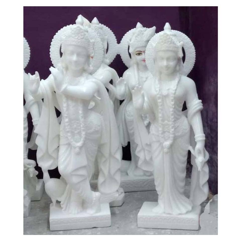 รูปปั้นหินหินอ่อนสีขาวเทพธิดาและพระเจ้า Radha krishna ทำด้วยมือมีลวดลายที่เป็นเอกลักษณ์ผลิตภัณฑ์ที่มีพรสวรรค์ในชื่อ