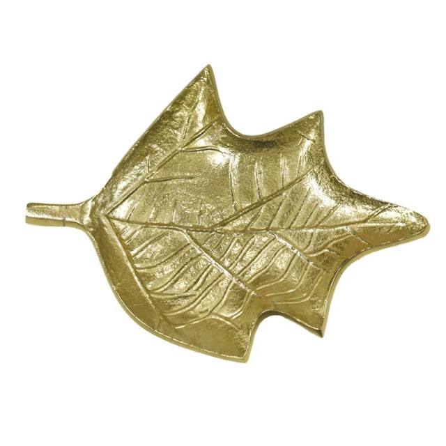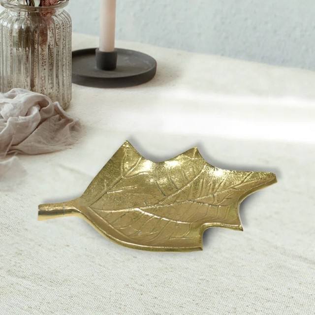 ถาดอลูมิเนียมตกแต่งเคลือบทองทำด้วยมือเป็นถาดตกแต่งที่มีรูปร่างเหมือนใบไม้ทำจากอลูมิเนียมและเคลือบด้วยทองคำ