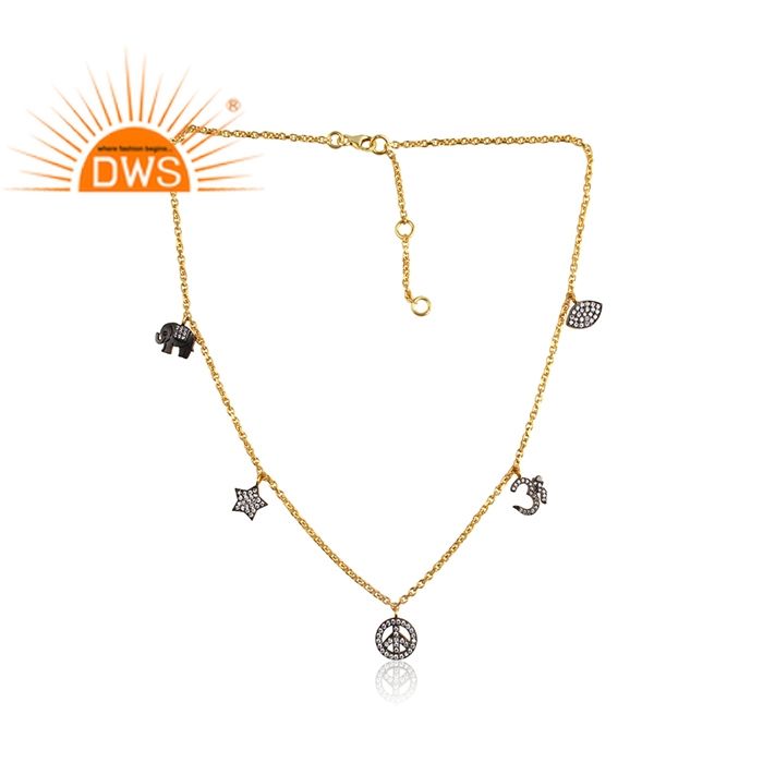 ทำด้วยมือชุบทอง925เครื่องประดับสร้อยคอเงินสวมใส่เครื่องประดับจี้เพทายแห่งความรุ่งโรจน์หลายเสน่ห์ผู้จัดจำหน่ายเครื่องประดับสร้อยคอ