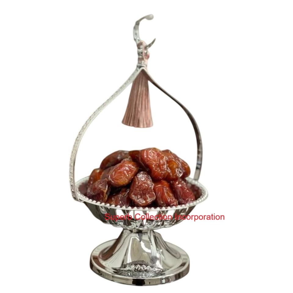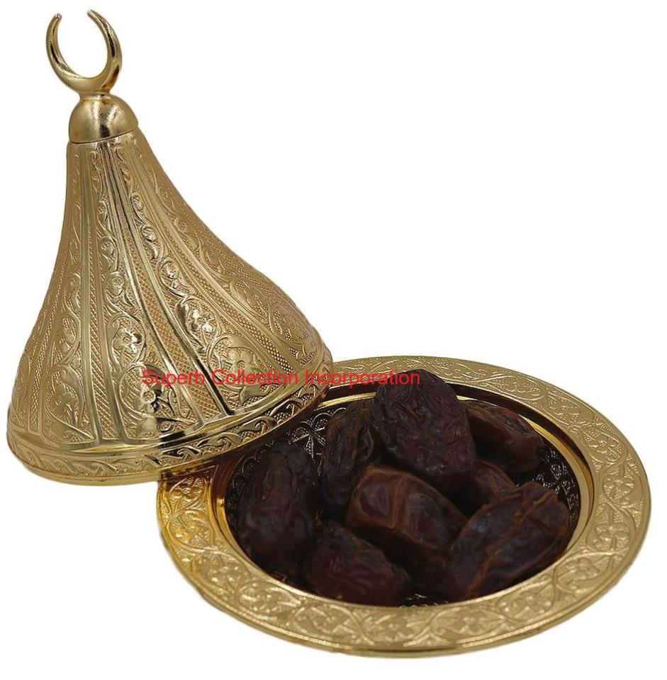 ชามทองเหลืองชุบทองทำด้วยมือพร้อมขาตั้งตกแต่งและฝาโดมดีไซน์อิสลามหรูหราสำหรับตกแต่งบ้านและของขวัญ