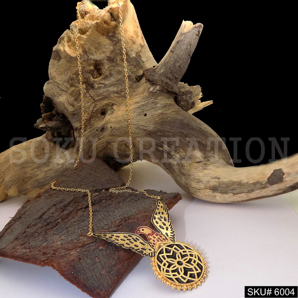 สร้อยคอจี้ทองเหลืองชุบทองทำมือ ดีไซน์นกขนาดใหญ่เคลือบเงา สไตล์คริสเตียน สวยเก๋ทันสมัย