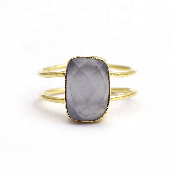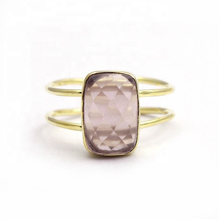 แหวนแฟชั่นชุบทองทำด้วยมือแหวนอัญมณีสีฟ้าบุษราคัมทรงสี่เหลี่ยมวงแหวนคู่ปรับขนาดได้