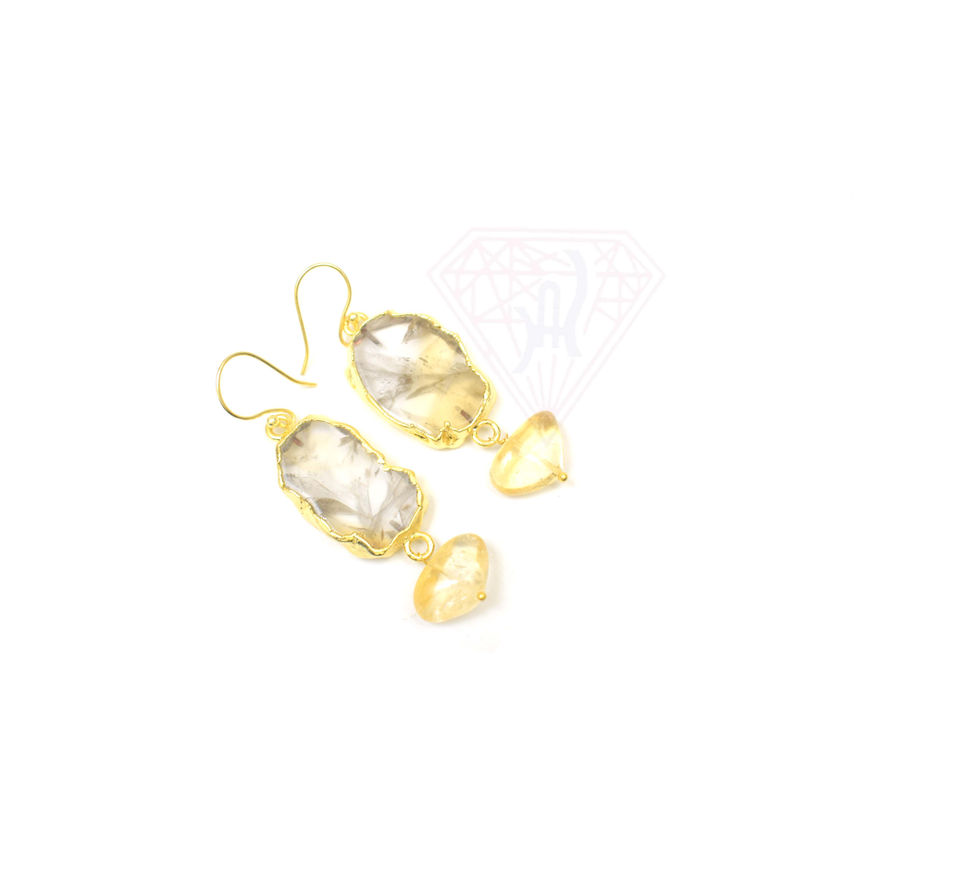 ต่างหูห่วงทรงรีชุบทองทำด้วยมืออัญมณีควอตซ์อเมทิสต์ซิทรินสวยงามของขวัญสำหรับงานแต่งงานสำหรับผู้หญิง