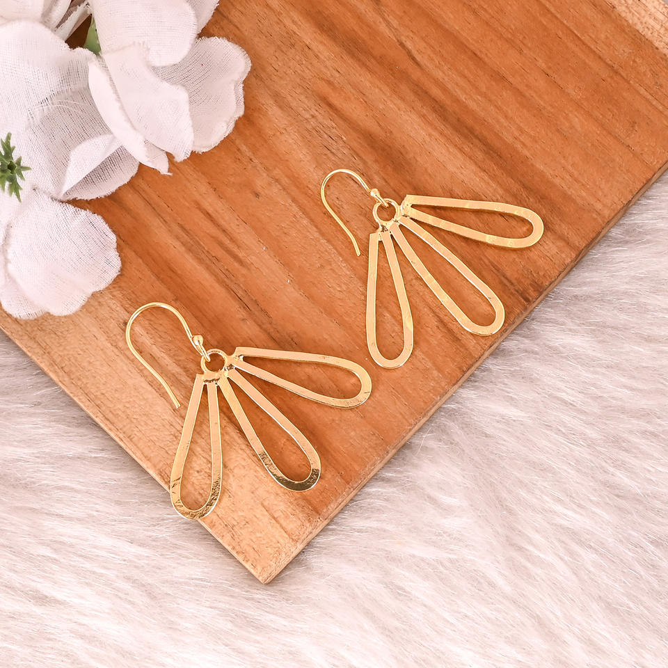 ต่างหูรูปดอกไม้ครึ่งดอกสไตล์วินเทจชุบทองทำด้วยมือสำหรับผู้หญิงของขวัญทองเหลืองสำหรับงานพิธีหมั้น