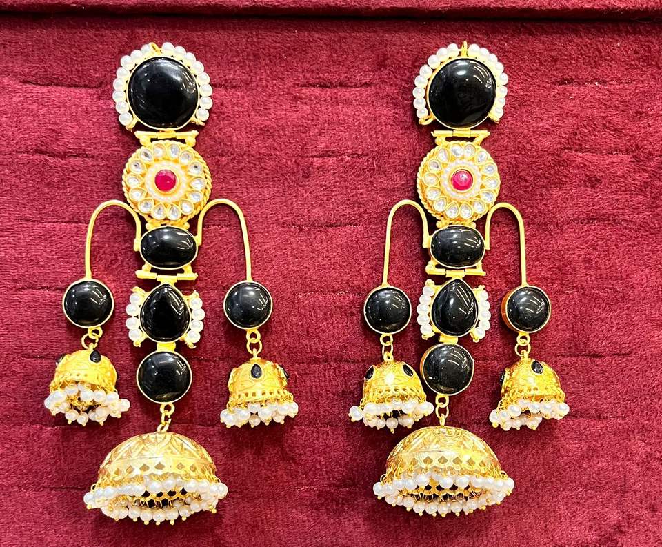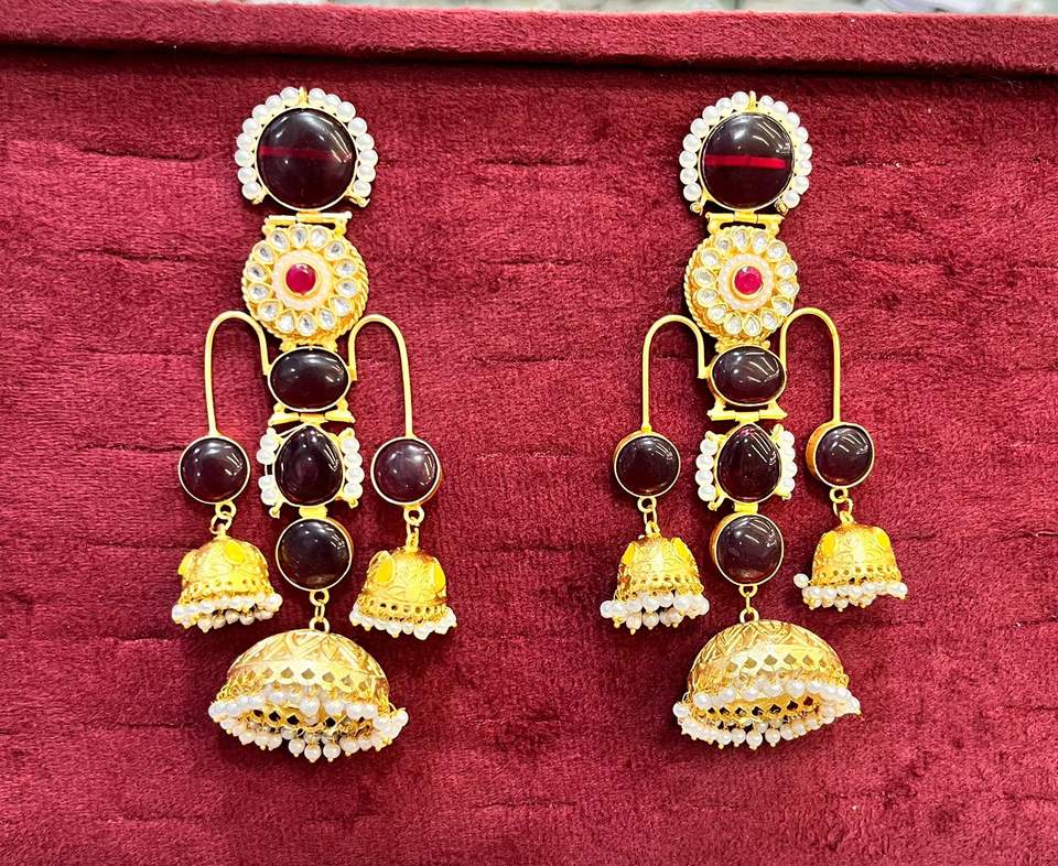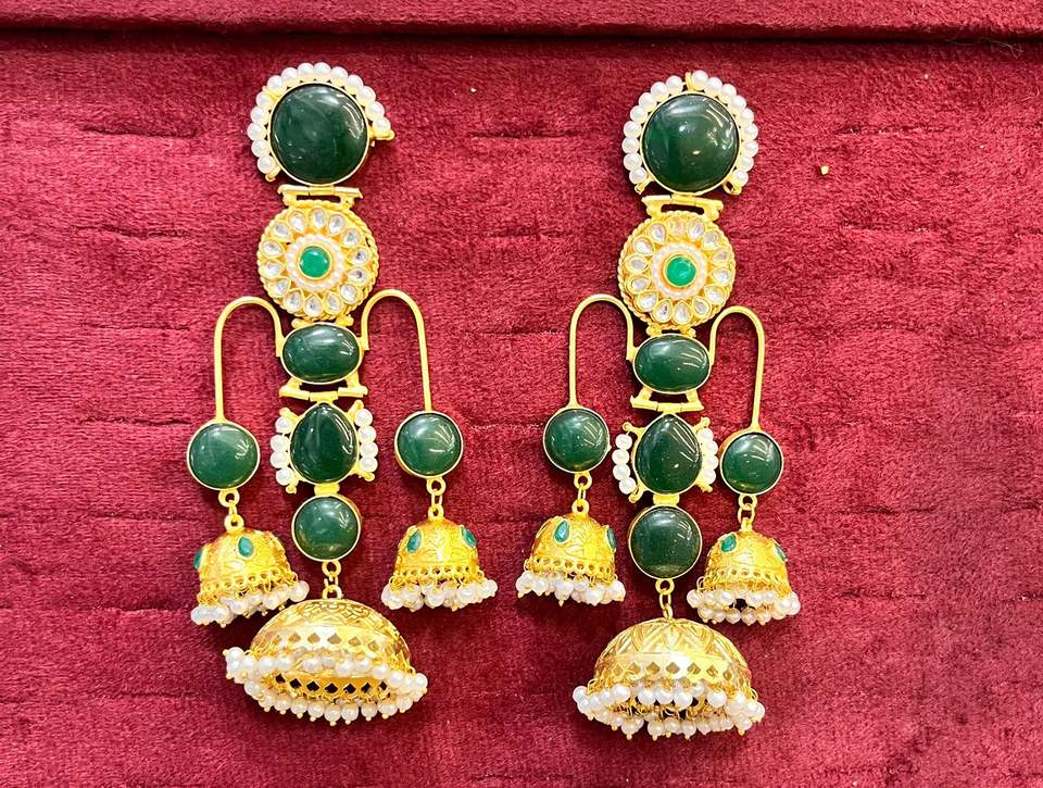 ต่างหูหินโมนาลิซ่าชุบทองทำมือ เครื่องประดับอินเดียแบบดั้งเดิม เหมาะสำหรับงานเทศกาลและงานแต่งงาน น้ำหนักเบา โดดเด่นสะดุดตา