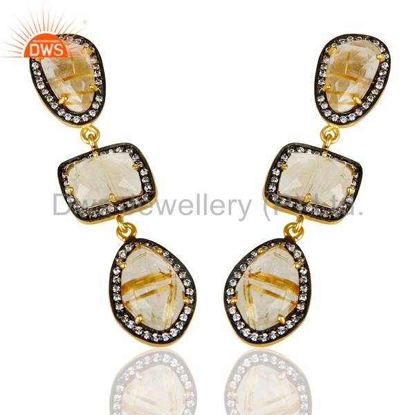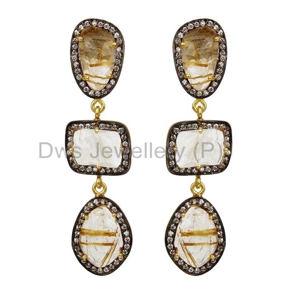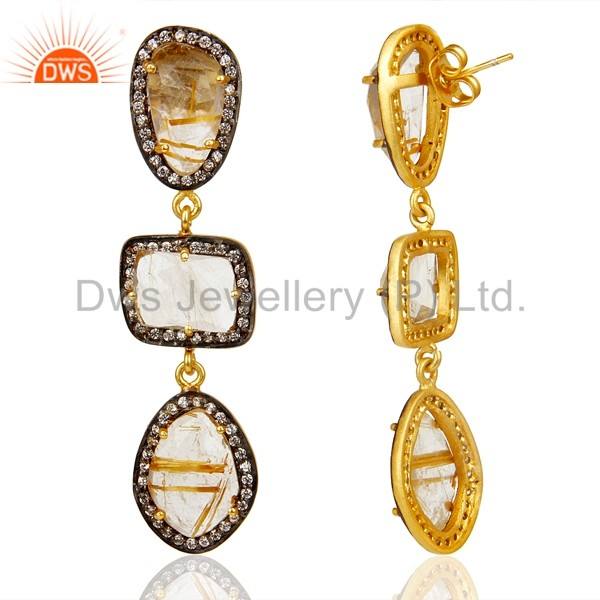 ต่างหูทองเหลืองทอง rutile ทำด้วยมืออ็อกซิไดซ์อัญมณีควอทซ์ทองขายส่งเครื่องประดับแฟชั่นของผู้หญิง