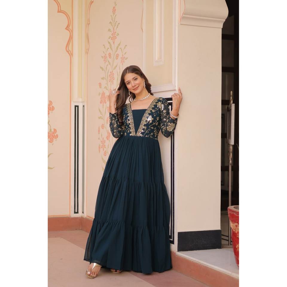 ชุดเดรสงานฝีมือสำหรับงานปาร์ตี้ ลายดอกไม้ ทรงเอไลน์ เอวทรงเอ็มไพร์ ไซส์ XL ผ้าชีฟอง ประดับเลื่อมและงานปักดิ้นทอง