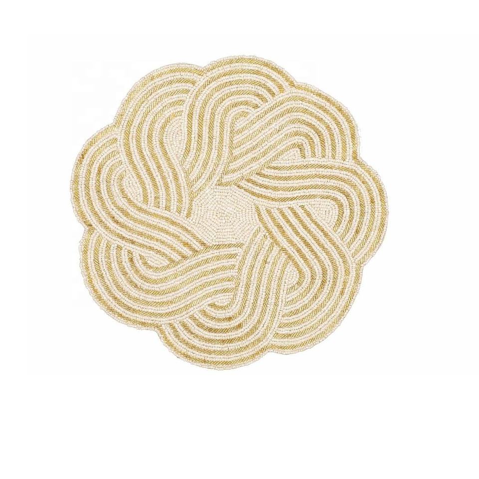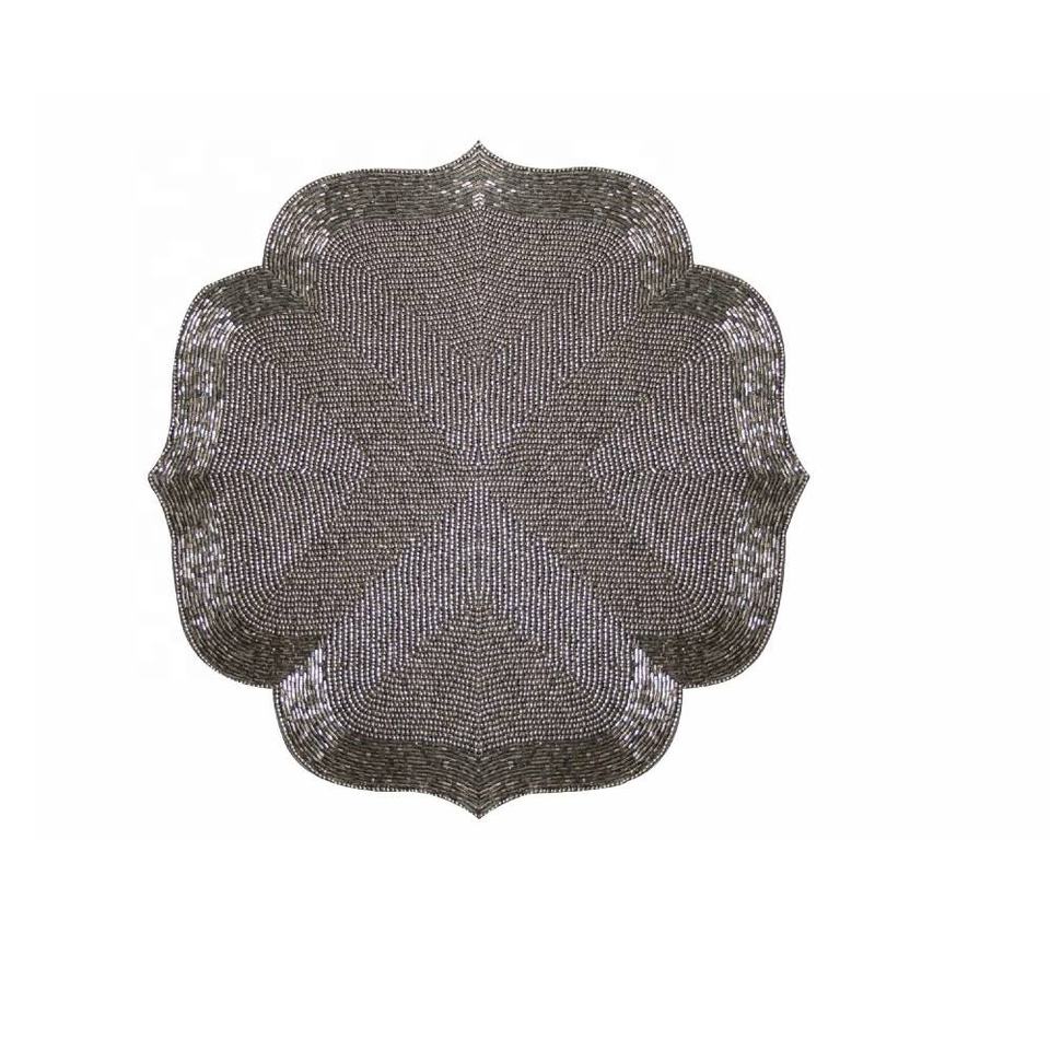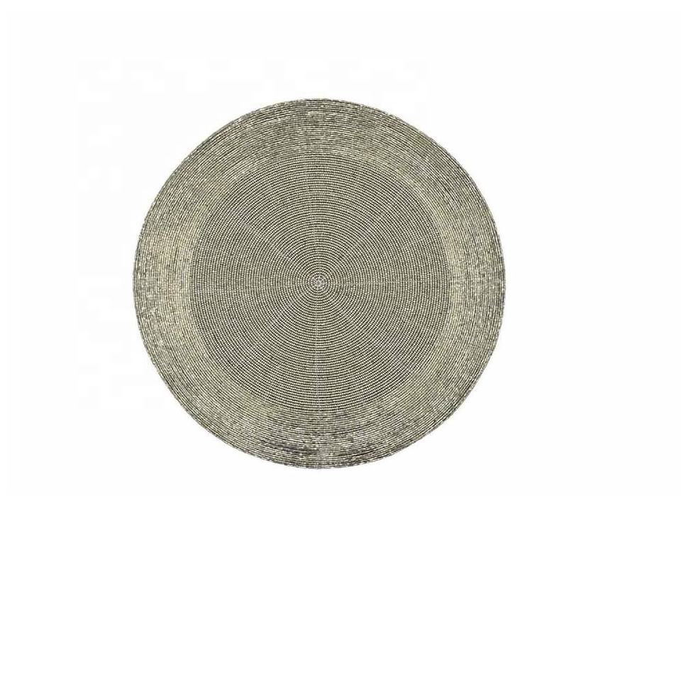 แผ่นรองแก้วลูกปัดสีเทาแบบแฮนด์เมดแผ่นรองจานกลมสำหรับวางบนโต๊ะในครัวแผ่นรองจานแก้วลูกปัดแก้วสำหรับโต๊ะอาหารที่บ้าน