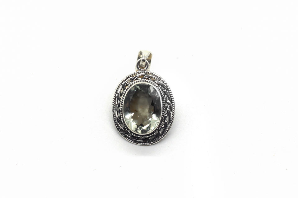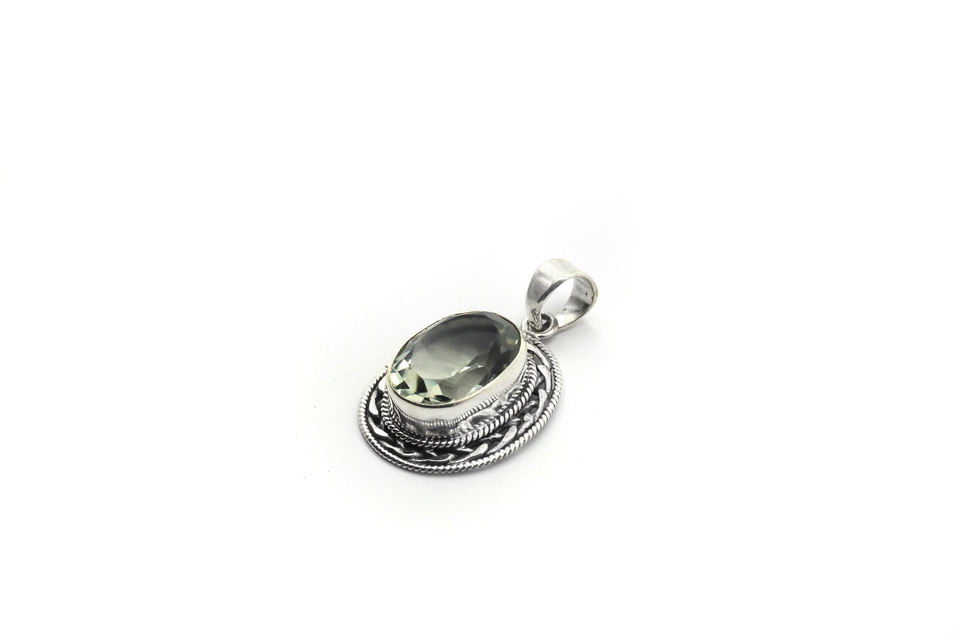 จี้หินอะเมทิสต์สีเขียวทำมือ เงินแท้ 925 เครื่องประดับผู้หญิง สไตล์โบฮีเมียน วินเทจ แบบฝังขอบ ปราศจากนิกเกิล