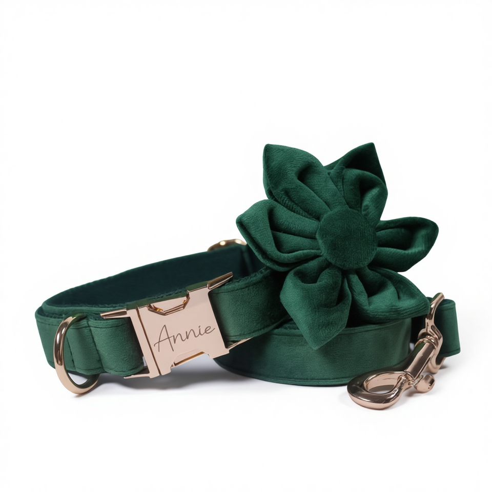 Handmade Green Flower Wedding Christmas Easter Adjustable Custom Name Dog Puppy Collar
