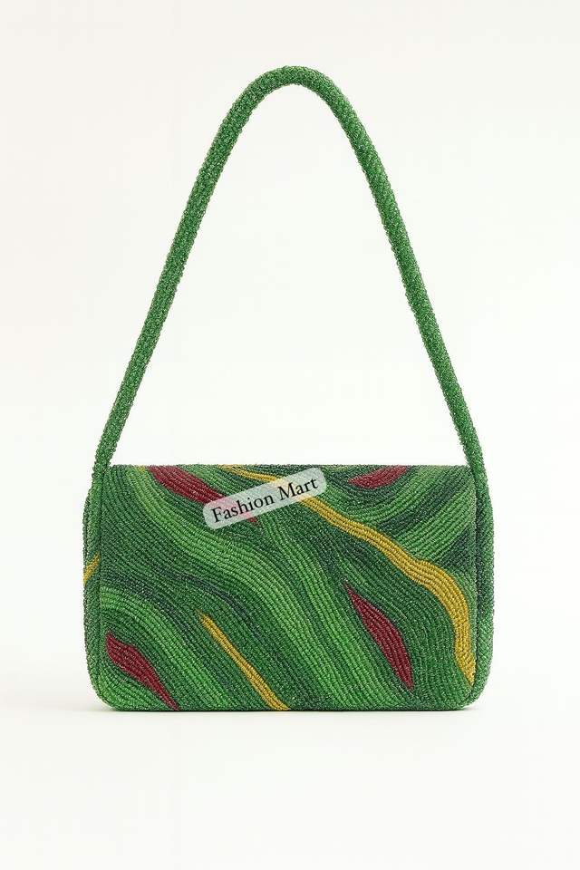 กระเป๋า Hobo ทำด้วยมือสีเขียวพร้อมรายละเอียดหลากสีเครื่องประดับแฟชั่นสไตล์ลูกปัดสีสันสวยงาม