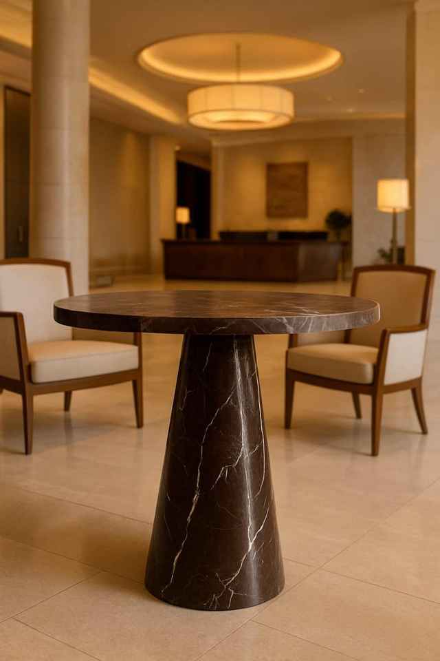 โต๊ะข้างหินอ่อนสีเขียวทำมือ: โต๊ะหินทรงกลมทันสมัย