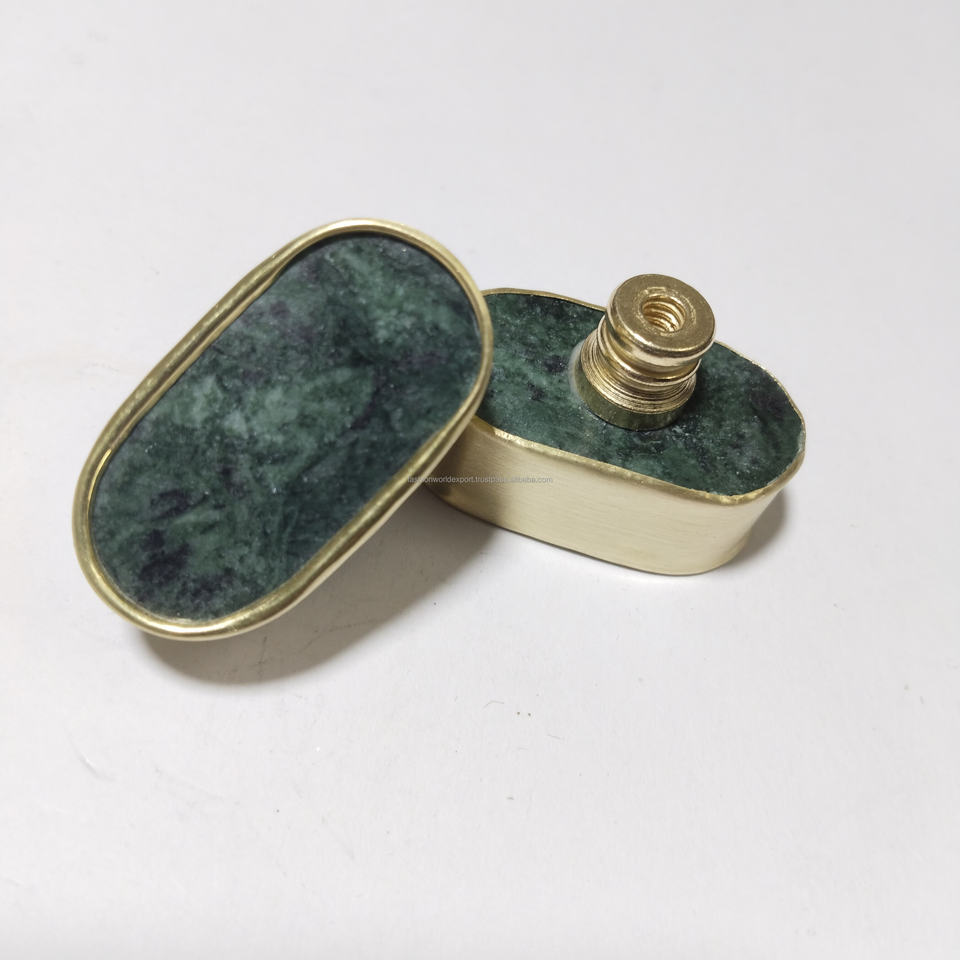 ลูกบิดประตูหินอ่อนสีเขียวทำด้วยมือกรอบทองเหลืองปรับได้แบบเรียบง่ายเฟอร์นิเจอร์ห้องนั่งเล่นฮาร์ดแวร์ตู้ดึงสำหรับลิ้นชักแต่งตัว