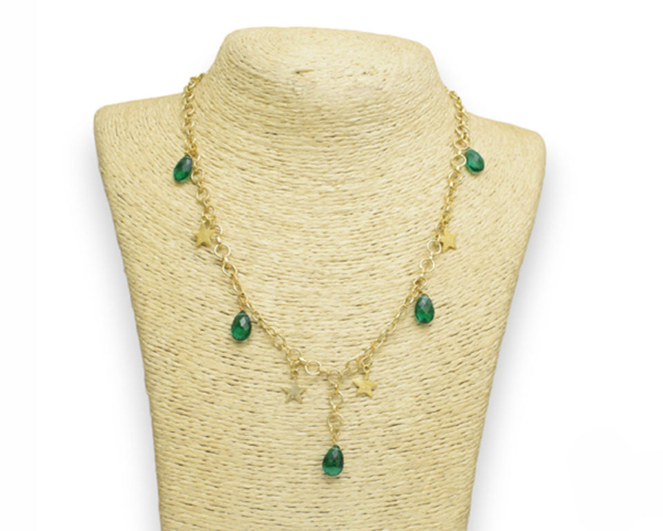 สร้อยคอโซ่ควอตซ์สีเขียวทำด้วยมือสีเหลืองทองสำหรับการหมั้นของขวัญที่ดีที่สุดสำหรับวันวาเลนไทน์การตั้งค่ากรอบปีใหม่
