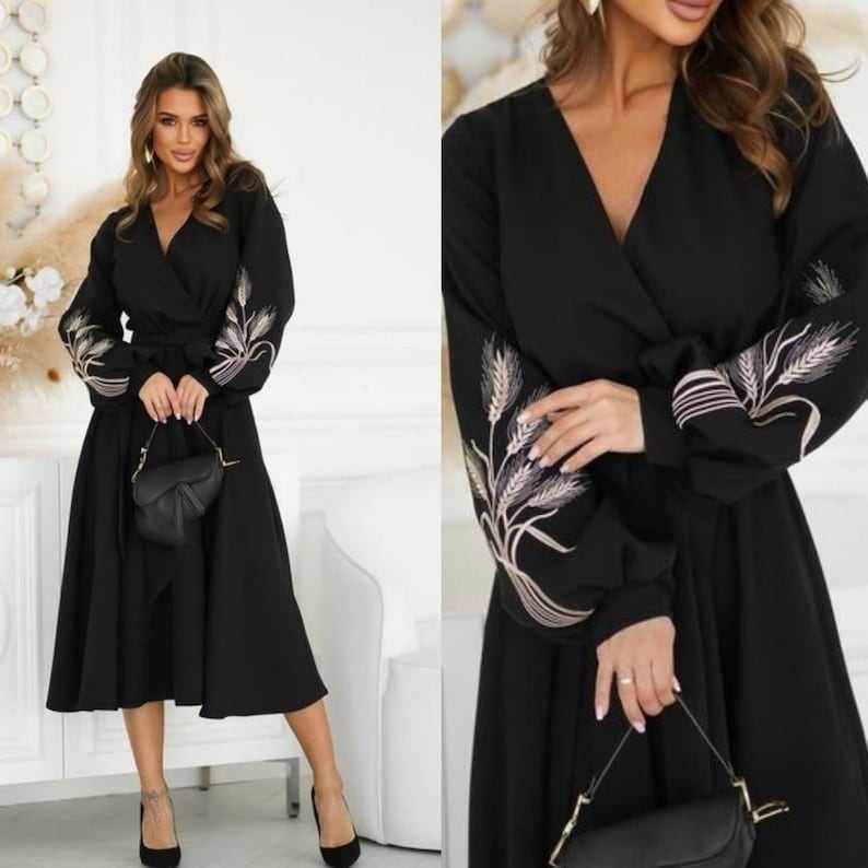 ชุดเดรสแบบปักลายยูเครนสีเขียวงานทำมือพร้อมชุดเดรสแบบดั้งเดิมและเสื้อเบลาส์ปักลาย